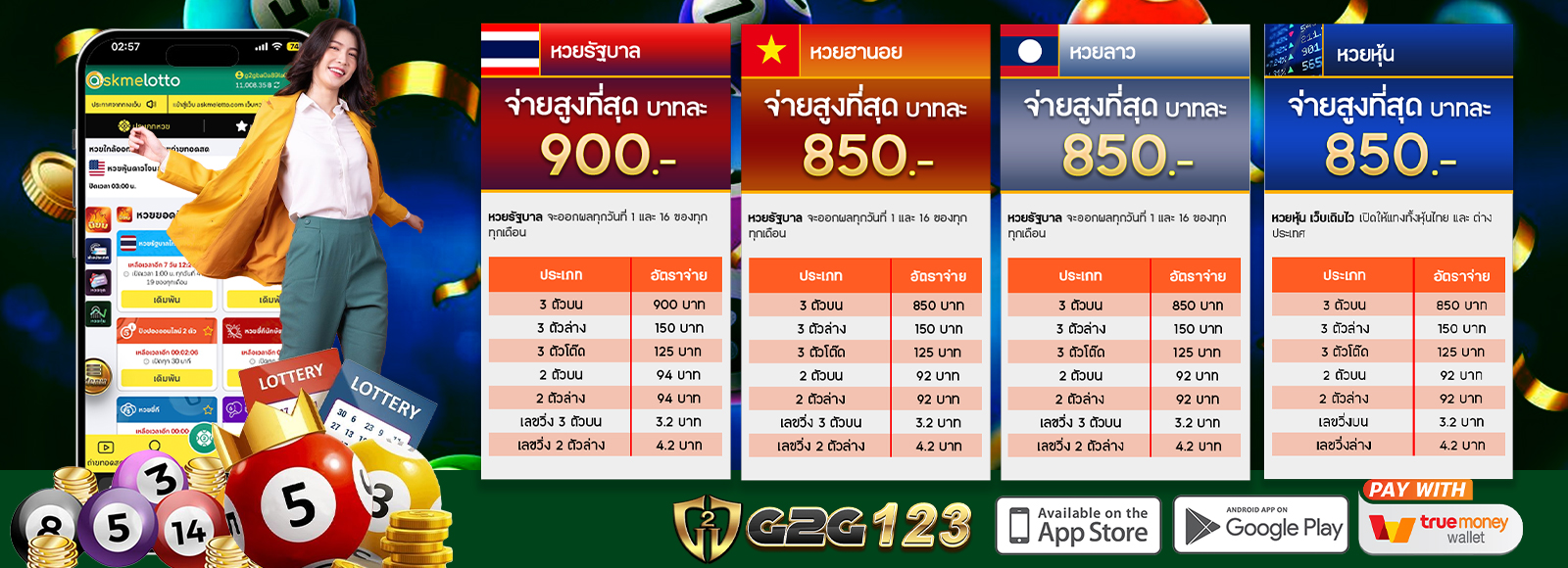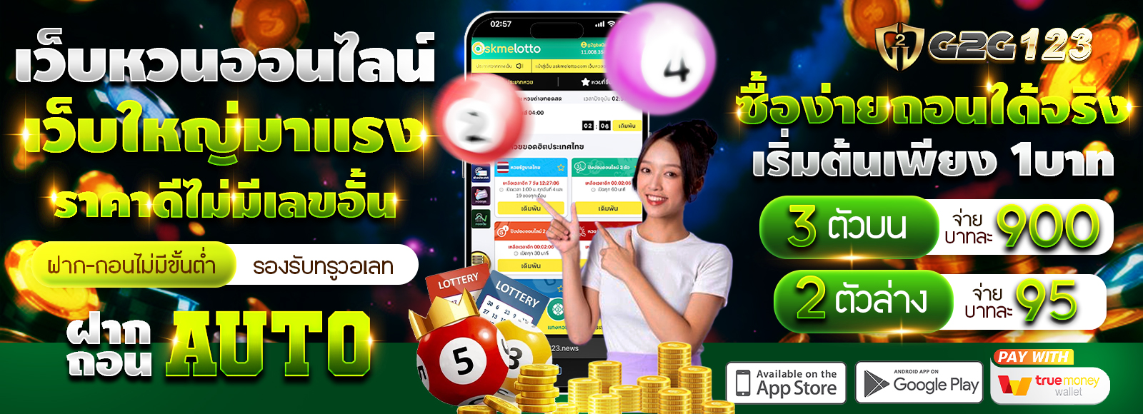 G2G123 หวยออนไลน์ ถูกกฎหมาย ที่คุณไม่ควรพลาด หากคุณกำลังมองหาเว็บตรง ไม่ผ่านเอเย่นต์ ที่จ่ายจริง 100% และมีความปลอดภัยสูง เว็บหวยออนไลน์เจ้าใหญ่ที่เรานำเสนอพร้อมให้บริการทุกท่านด้วยระบบ ออโต้ ที่ทันสมัยกับ G2G123 และรวดเร็ว ด้วยการจ่ายเต็มทุกยอดที่คุณถูกรางวัล ไม่มีเลขอั้น เล่นง่าย ผ่านมือถือหรือคอมพิวเตอร์ได้สะดวกทุกที่ทุกเวลา เว็บแทงหวย ระบบฝาก-ถอนอัตโนมัติที่รวดเร็ว ช่วยให้คุณทำธุรกรรมได้รวดเร็วทันใจ ไม่ต้องรอนาน มั่นใจได้ว่าคุณจะได้รับเงินรางวัลครบทุกบาท ไม่มีหัก สัมผัสประสบการณ์แทงหวยที่ดีที่สุดกับเราวันนี้