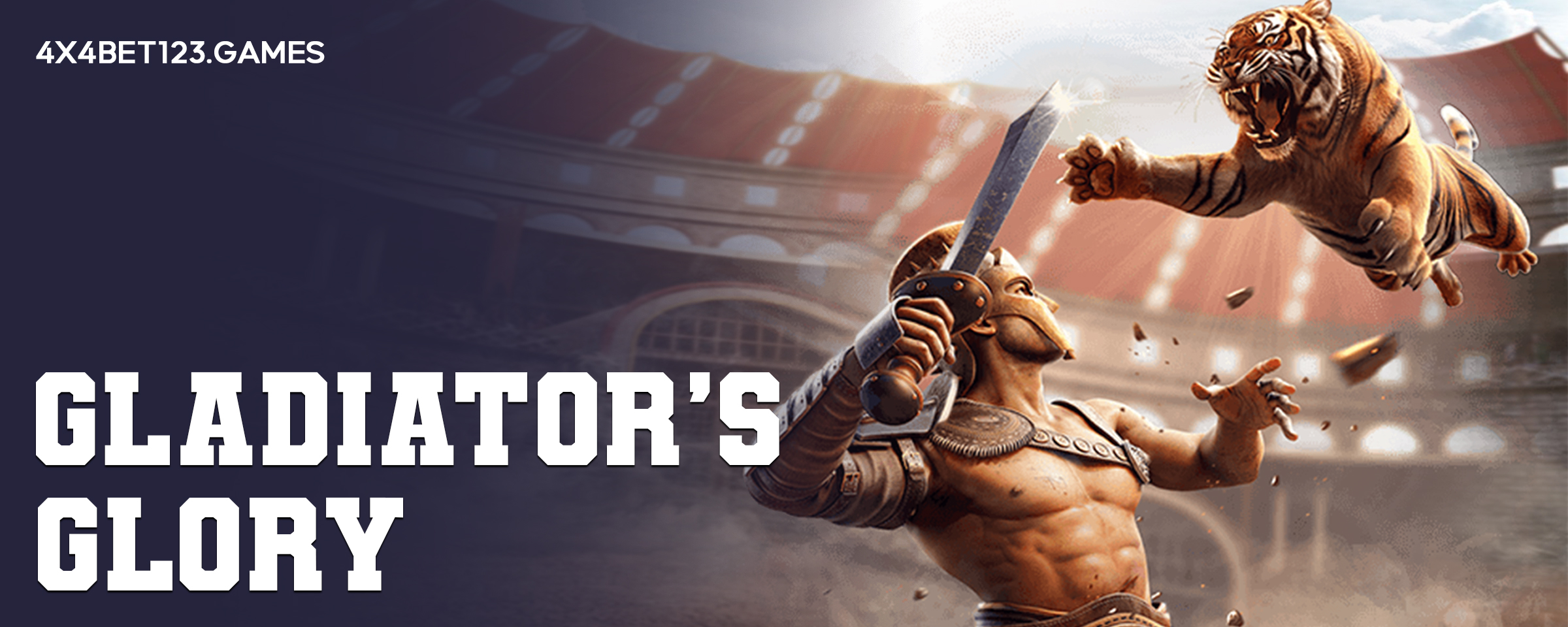 เกมสล็อต Gladiator’s Glory : เกมสล็อตกลาดิเอเตอร์  เกมสล็อต ค่าย PGSOFT มาในธีมการต่อสู้บนสังเวียนแห่งศักดิ์ศรี มาดูโชว์การต่อสู้ของนักรบยอดฝีมือผู้แข็งแกร่งที่สุด ต่อสูงกับเสือร้าย ลุ้นเงินรางวัลสูงสุด x5000 เท่า มาสู้กับเราสิ.. เว็บตรงไม่ผ่านเอเย่น สล็อตแตกง่าย 4X4BET123.GAMES เว็บตรงระบบดีที่สุด รองรับทุกอุปกรณ์ ปลอดภัย 100%
